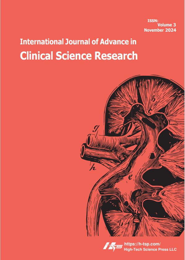 International Journal of Advance in Clinical Science Research (ISSN: 3065-9981), is a peer-reviewed scholarly journal. It publishes annually and continuous publication schedule is kept so that articles are published online as soon as the final proofs are approved by the authors. It aims to promote rapid communication and dialogue among researchers, scientists, and engineers working in the areas of clinical medicine. It is hoped that this journal will prove to be an important factor in raising the standards of discussion, analyses, and evaluations relating to clinical medicine programs.